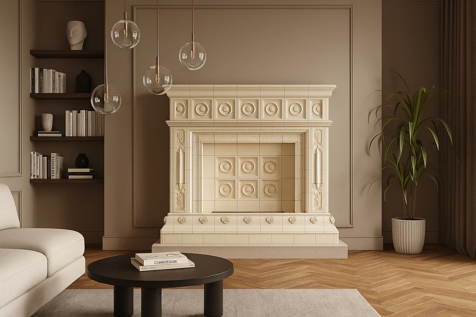 | Содержание: | Изразцовая облицовка на пристенный камин «Фокус». Изразцы серии Люкс "Люкс" |